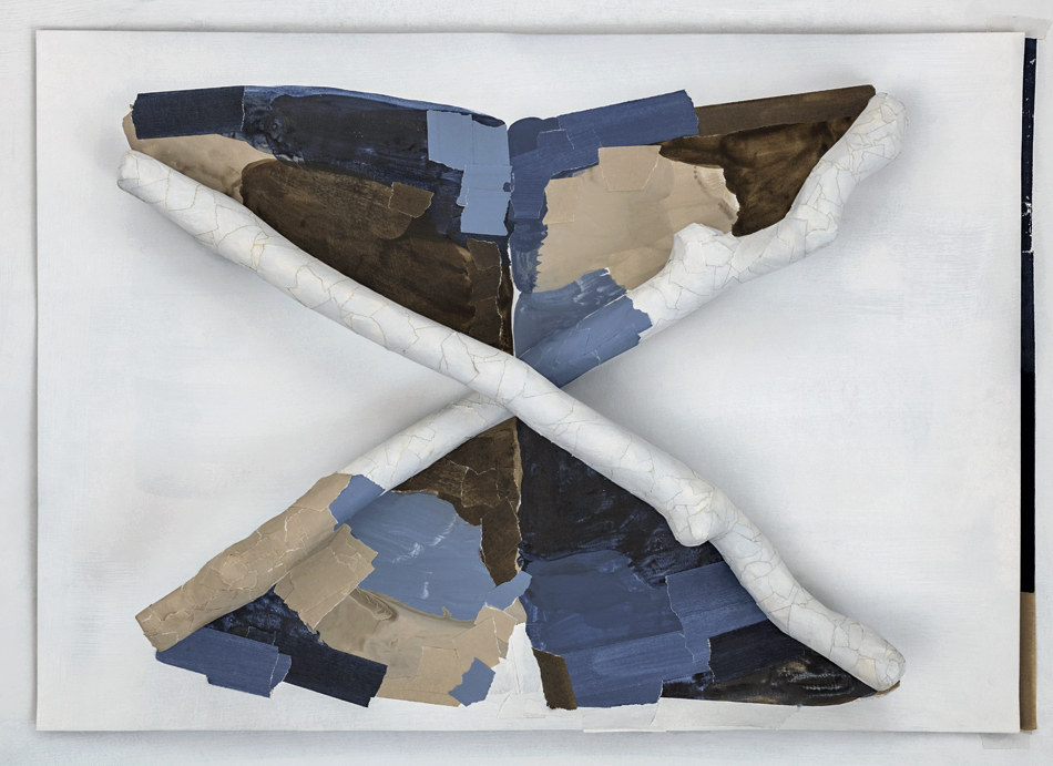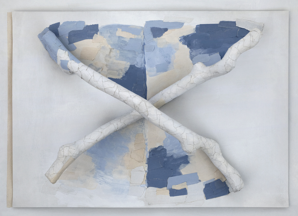De twaalf beelden van Common Ground zijn elk opgebouwd rond een centraal kruismotief, dat met takken gemaakt lijkt te zijn – of zijn het beenderen? Dit motief geeft die beelden een sterke symbool- of signaalfunctie. Maar terwijl een signaal – op een verkeersbord of een seinvlag – in een ogenblik een eenduidige boodschap overbrengt, blijkt dat hier geenszins het geval. Deze strak geordende reeks heeft meteen een krachtige visuele impact, maar tegelijk is elk van deze beelden een vat vol paradoxen. Zijn dit assemblages, collages, schilderijen, foto’s? Ilona Plaum (°1970) blijkt ingenieuze combinaties van die verschillende media te maken.